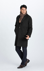 「RE:NEWOOL」は愛知県の尾州産地で作られ、天然のウールと同様に急激な暑さ寒さを緩和し、吸湿性があるため衣服内気候を調整します。原料調達、反毛、紡績、織布、整理など全ての工程を日本国内で行い、創業70周年記念企画にふさわしい品質にこだわった1着です。ジャストルーズなシルエットで、ビジネスからフォーマルなシーンでの着用に適したコートです。