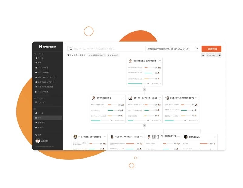 HiManagerは、OKR/MBO、1on1、リアルタイムフィードバックをベースにしたパフォーマンス・マネジメントサービスです。