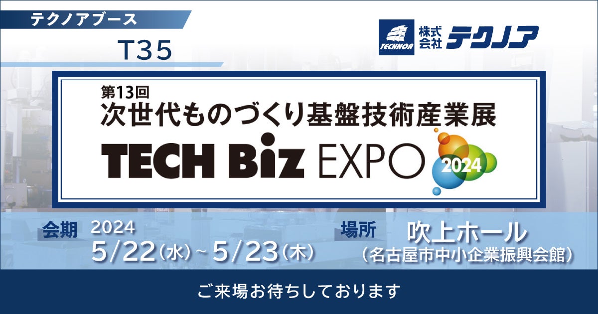 株式会社テクノア(本社:岐阜県岐阜市、代表取締役:山﨑 耕治、以下:テクノア)は、5/22~23 に 吹上ホール で開催される「第13回 次世代ものづくり基盤技術産業展―TECH Biz EXPO 2024― 」に出展いたします。