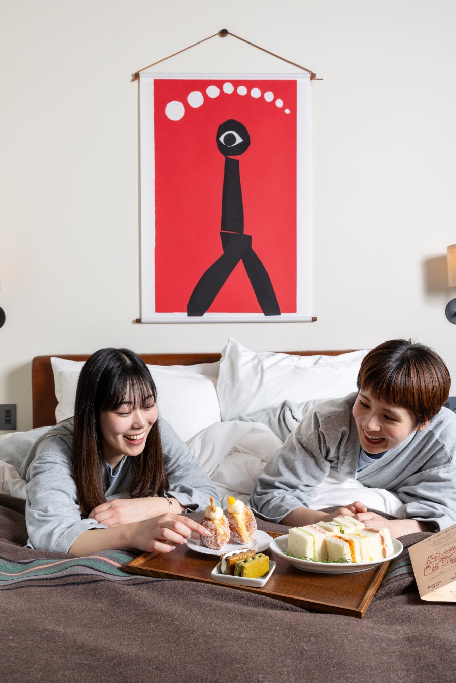アフタヌーンティーを気軽に持ち運んで楽しめる新提案「ピクニックティー」を5月1日(木)より3ヵ月期間限定で提供。ロビーギャラリー展示アーティストancco氏のオリジナルトートバッグに、小ぶりで7色のサンドイッチセイボリーサンドイッチ、京都の名店「Kew」の季節限定ドーナツ、平野紗季子氏手がける京都限定のバターサンド2種類、そしてスイーツとの相性がいいオリジナルドリンク2本をセット。エースホテル京都らしい遊び心いっぱい。「ピクニックティー」は、エースホテル京都3階のメインダイニング「KŌSA(コウサ)」でのイートインも可能。どこでも自分らしいティータイムを演出できます。ホテルの客室はもちろん、チェックイン前の京都歩きに、チェックアウト後の新幹線の中で旅の余韻を楽しむのもよし。小さなときめきを添えてくれる“お菓子な存在”になることを願って。お得な宿泊プランには、トートバック付ピクニックティーをセットにして販売。チェックイン時にフロントにてピクニックティーのご希望時間をお知らせ下さい。