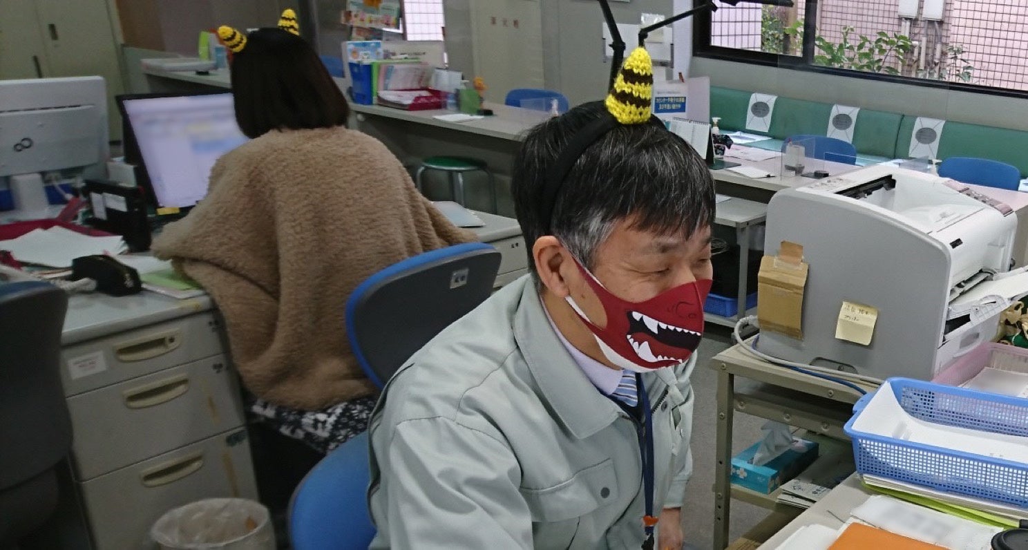 2月2日「鬼鬼の日」限定で、大江地域の信用金庫やJA、郵便局などの事業所で「鬼おにマスク」を着用。また市役所大江支所の職員も「鬼おにマスク」と「鬼のツノ」を業務中に着用して鬼になりきります。