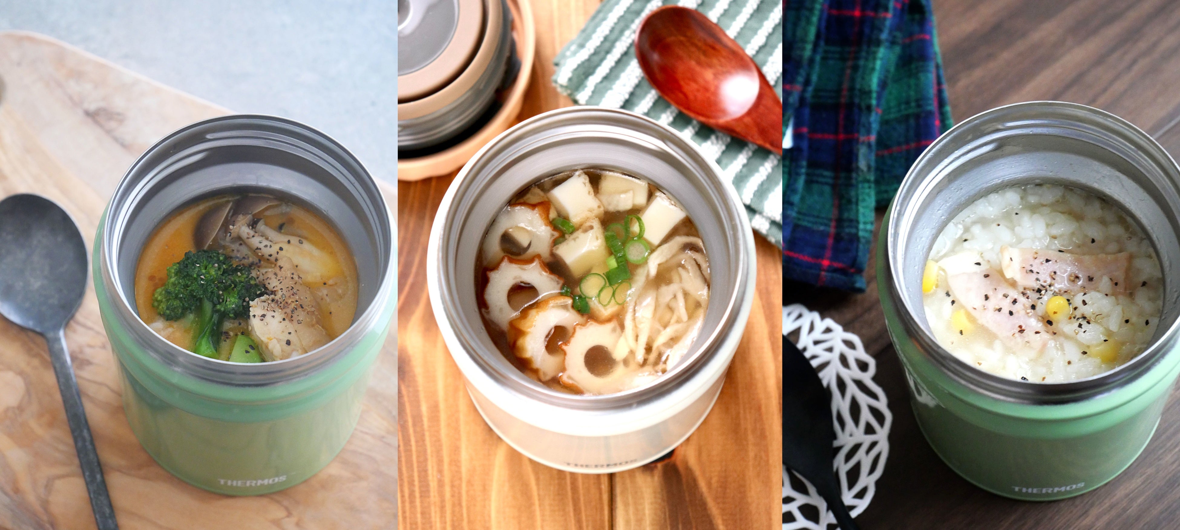 コロナ禍で料理の負担を感じている方にも、新たにお弁当を始めたい方にもおすすめ!お弁当や在宅ランチにもぴったり!3名の料理家が考案「サーモス 真空断熱スープジャー」簡単レシピ公開
