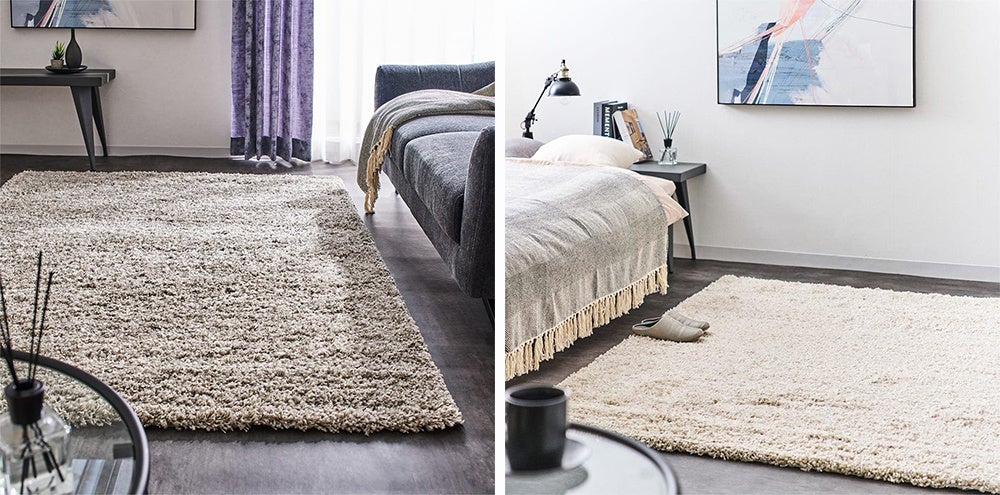 抗菌・消臭・防炎など、バツグンの機能性が魅力のトルコ製ラグ。二種類の糸と毛足の高低差で生まれるランダムな表情が独特な存在感で、モダンテイストのお部屋にもピッタリです。手触りもふわふわで、遊び毛が出にくいのもポイントの1つです。
