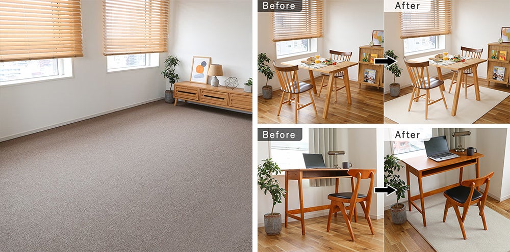 1cm刻みで作成可能で、コスパも良いオーダーカーペット。25色のカラー展開でどんな部屋でも自分好みに「ぴったり」と合わせられるカーペットです。変形したお部屋や、柱にもピッタリサイズでオーダー可能です。