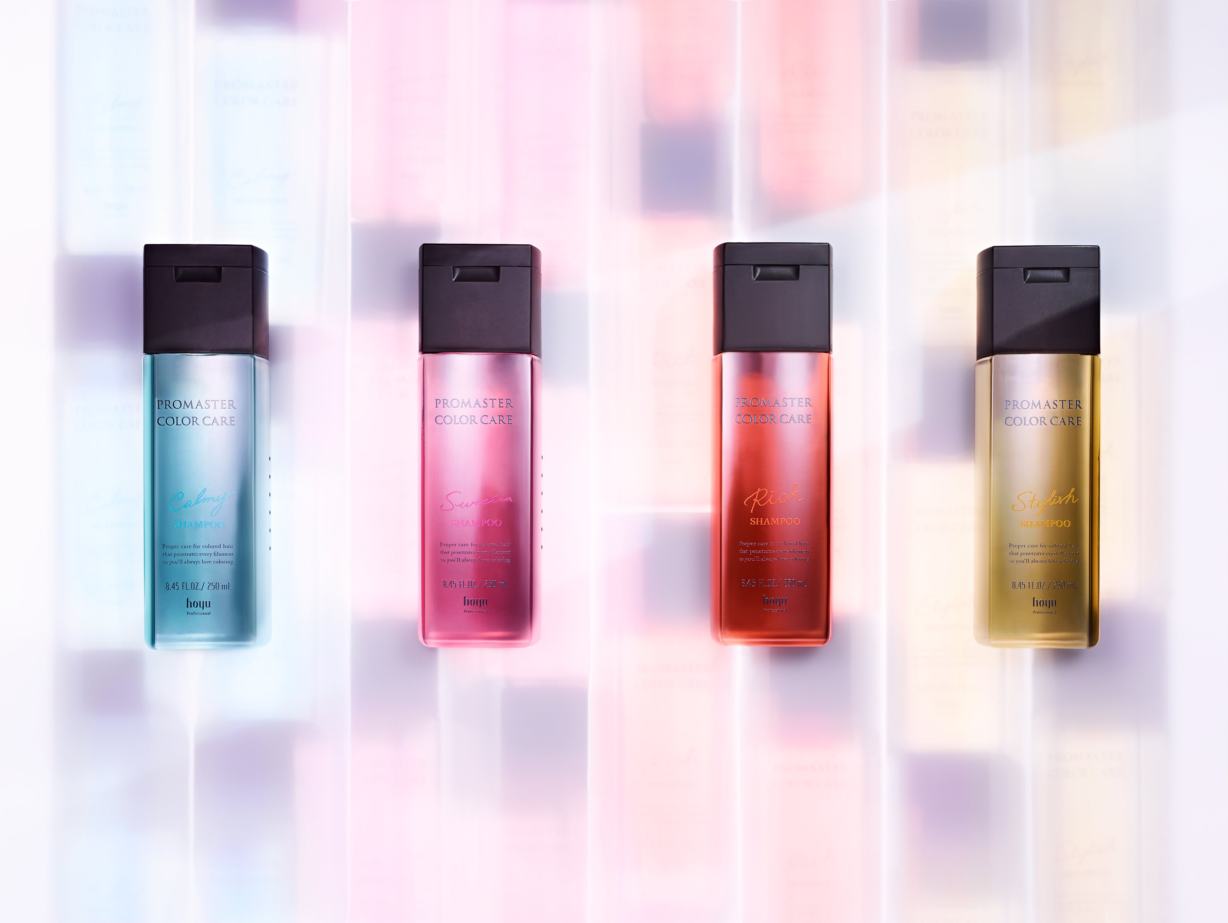 サロン専売ヘアケアブランド「PROMASTER COLOR CARE(プロマスターカラーケア)」は、2020年2月に誕生。ヘアカラーによって起こるダメージの補修に特化しており、それぞれの髪質変化に寄り添った4つのラインを展開。ヘアカラーによるお悩みに応じたケアで、美しい髪へと導くシリーズです。