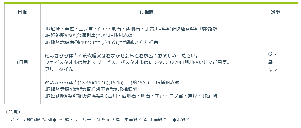 ※JR姫路駅までは新快速利用、JR姫路からは普通列車利用となります