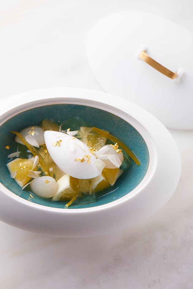4月6日に待望のオープンを迎える2階「シェフズテーブル」では、パティシエ江藤英樹による旬のフルーツを使った「デザートコース~Le Jardin Secret(ル・ジャルダン・セクレ)「秘密の園」~」と日曜日限定の「クープ エレアーヴ(パルフェ)」をご提供いたします。