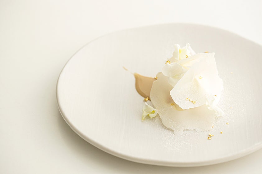 生産者と素材へのリスペクトをデザートにこめて。気鋭のデセール職人「江藤英樹」の世界観が溢れる6席だけの特別な空間の中で、シェフのクリエイティビティ溢れるひと皿を味わい、楽しむひとときをご堪能ください。