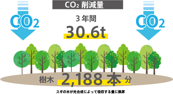 ある3年間で、CO2の排出量を約30.6t相当量削減できる見込みです。