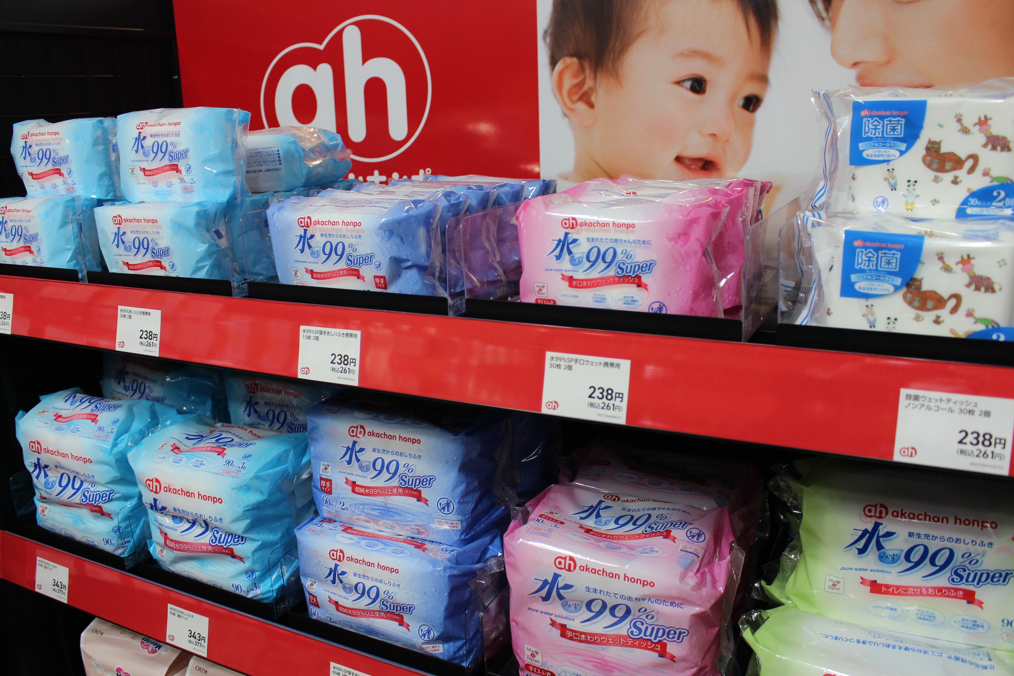おしりふき、ベビー飲料、ベビーフードなど