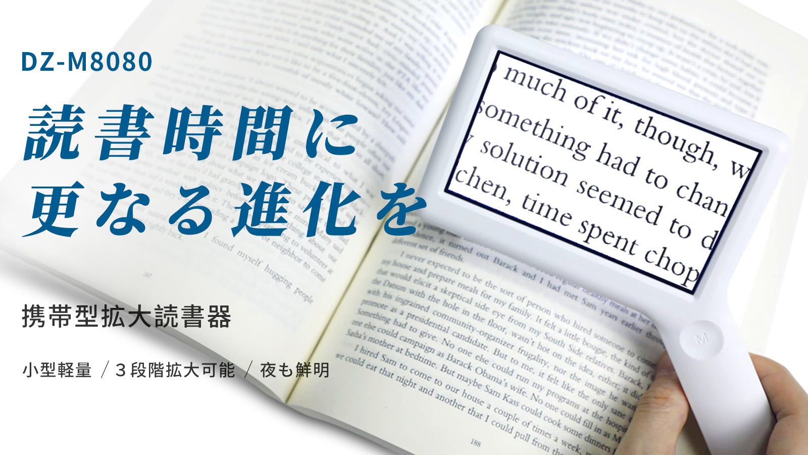 【新商品】心地良い読書環境をサポート!携帯型拡大読書器「DZ-M8080」先着特典付きで予約受付中!39%OFFの超超早割は先着50名様限定!