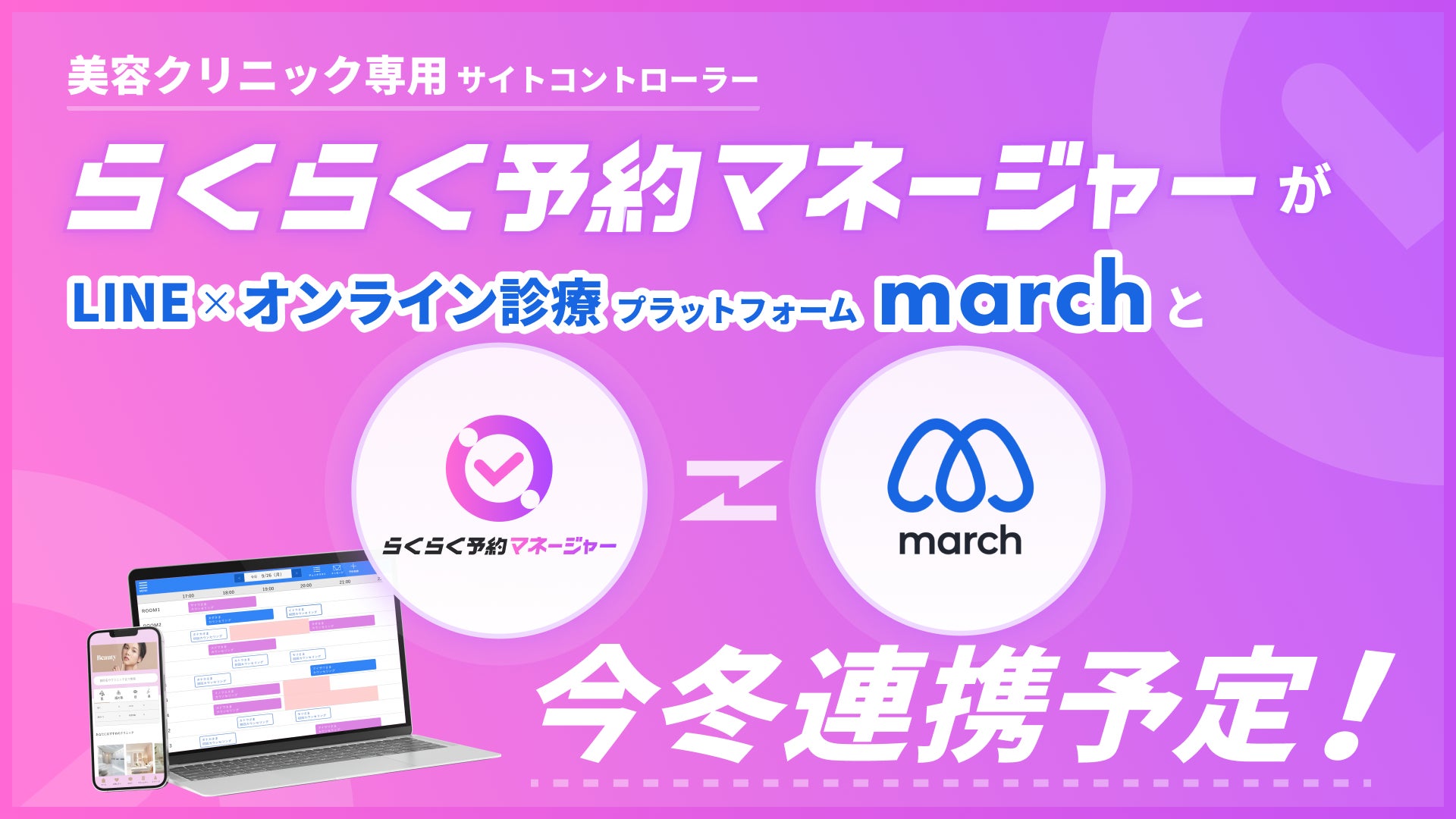 業界初*1 美容クリニック向けサイトコントローラー「らくらく予約マネージャーfor美容クリニック」とLINE×オンライン診療プラットフォーム「march」が今冬、連携予定