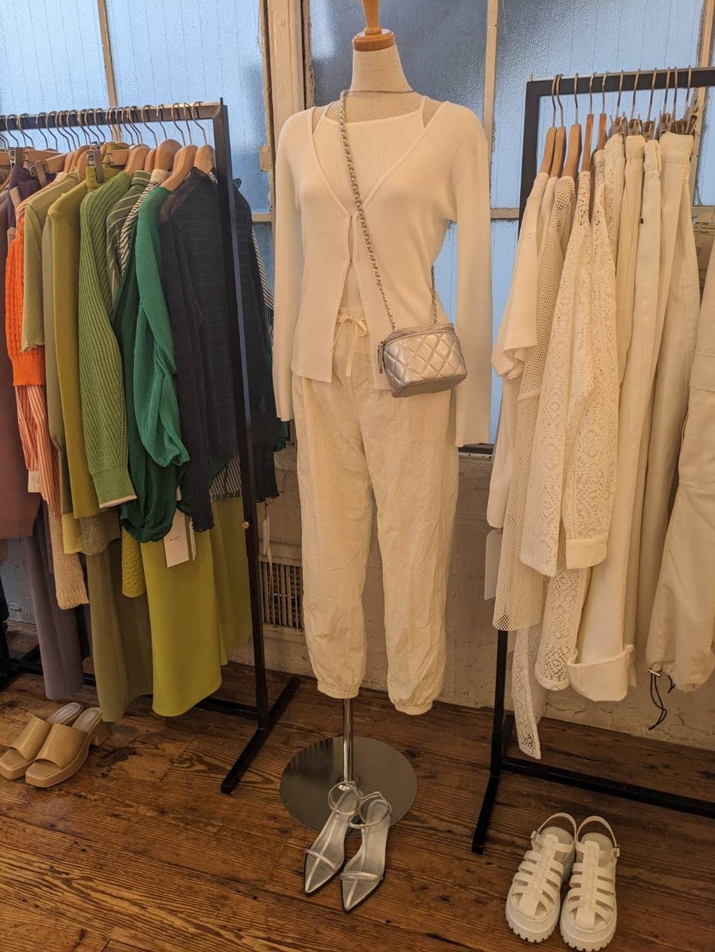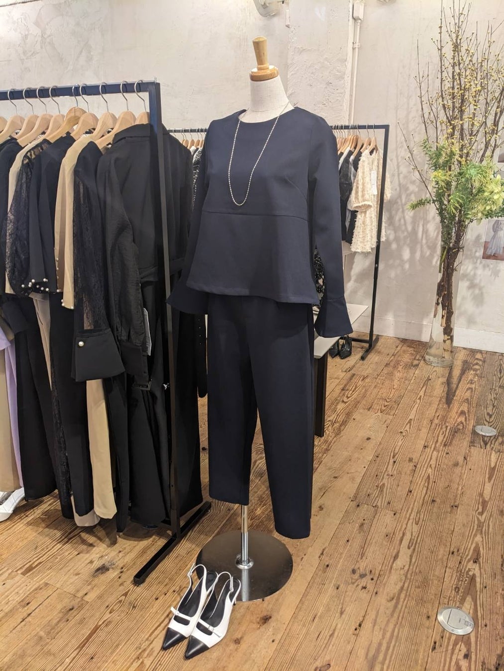 結婚式や入学・卒業式などのイベント時だけなく、日常使いもできるデザインや生地にこだわった「リエディプレミアムドレスコレクション」。人気を集めたのは、単品使いもでき、デイリーのスタイリングにも取り入れやすいパール使いのパンツセットアップ。他にもモード感のあるオールインワンや、ショートトップスとワンピースのアンサンブルも注目を集めました。