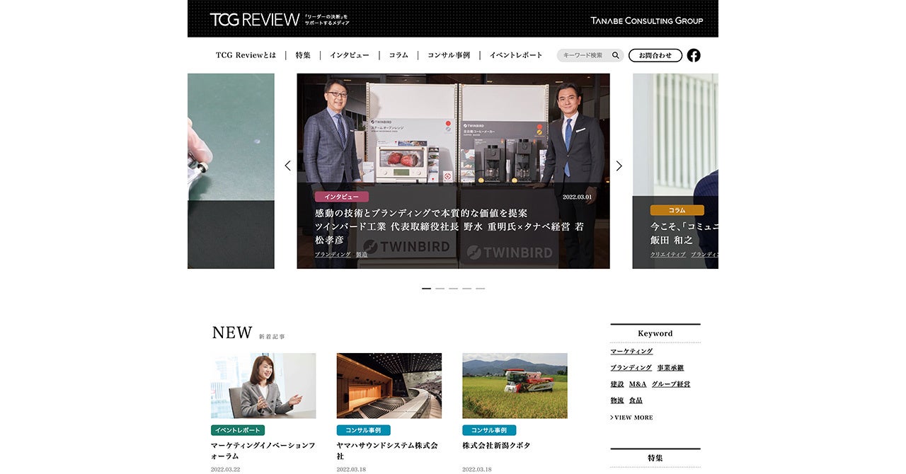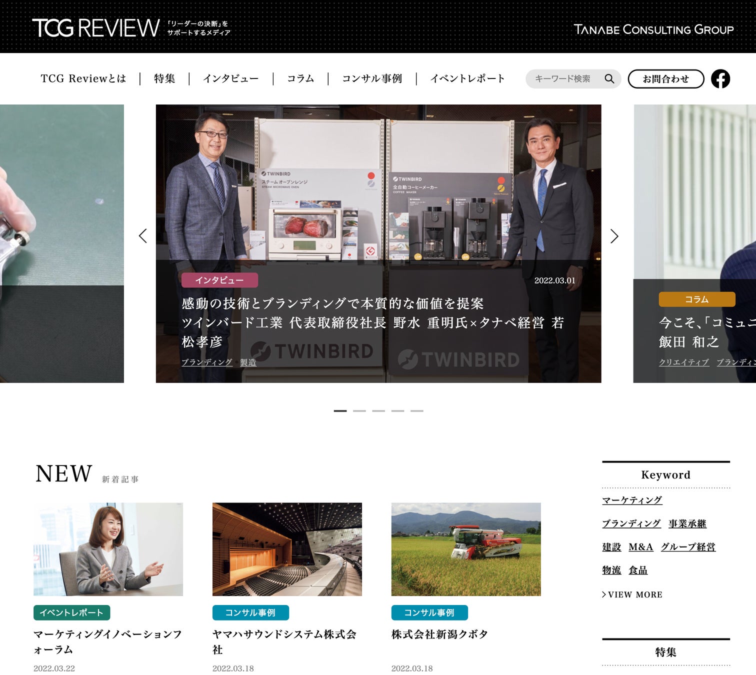 最新の経営課題をとらえた特集テーマやトップコンサルタントの執筆記事など800記事以上を掲載。リーダーの「決断」をサポートするメディアサイト『TCG REVIEW』がリニューアルオープン!