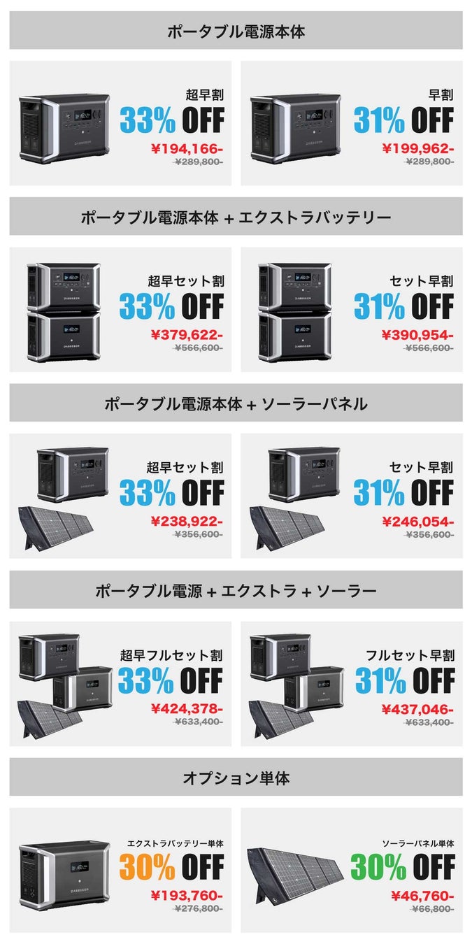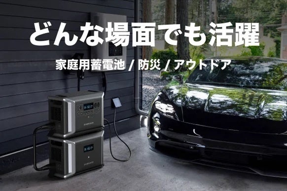 さらに専用のエクストラバッテリーを最大2台追加することで「8,330Wh」の大容量の確保、加えてオプションのソーラーパネルを使用することで電源のない場所でも電力の確保など、「安全性」だけではなく、アウトドアはもちろん自宅の予備電源や万一の備えなど様々なシチュエーションで活躍する性能も兼ね備えた、まさに次世代のポータブル電源が誕生いたしました。