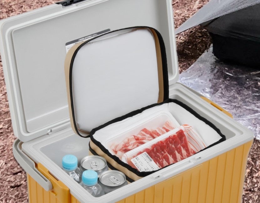 クーラーボックスにシンデレラフィットする付属の缶クーラー(専用保冷剤)にもこだわり、ボックス内の隙間を埋めてさらに保冷力アップ。