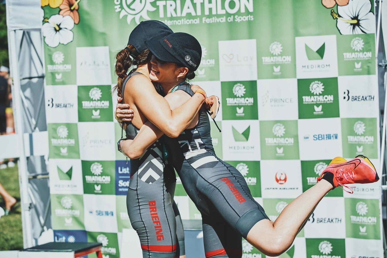 そのような日本人も多く参加する憧れの大会で、エドワーズ壽里は、オリンピックディスタンス リレー女子の部にて、見事優勝いたしました。今回は、大会の協賛も行っているラゲッジブランド「BRIEFING(ブリーフィング)」により、ブランド生誕25周年を記念した「ホノルルトライアスロン2023」特別なチームが結成され、ヨガだけでなく、アクティブな趣味を持ち、長距離トライアスロン・アイアンマンレースを12時間15分で完走した経験も持つエドワーズ壽里がメンバーとして選出され、実現いたしました。