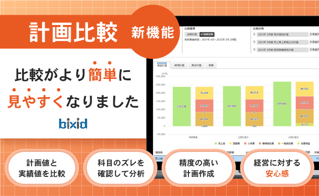 【予算数値の精度を高める】経営支援クラウド『bixid(ビサイド)』の経営計画機能に『計画比較』をリリースしました