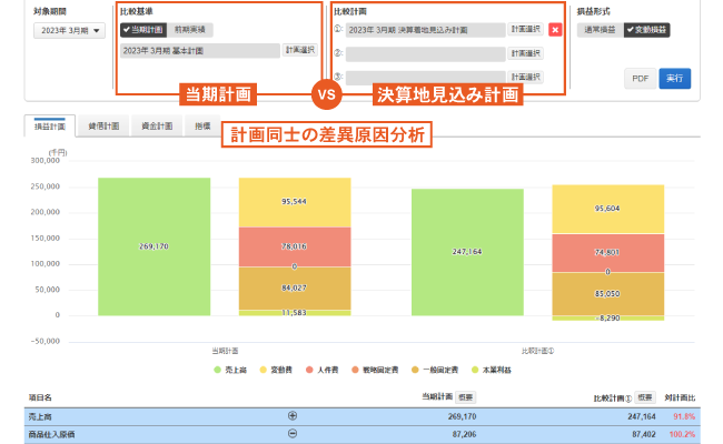 2.当初計画と期中の決算着地見込み計画との差異を探る