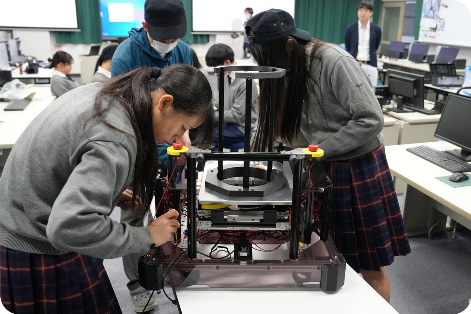 文部科学省「高等学校DX加速化推進事業(DXハイスクール)」の2025年度採択校である京都橘高等学校(京都府京都市)にて導入いただき、9月より授業提供いたしました。27名の受講生徒を5チームに分け、9回の授業でロボットを各チーム1台製作、最終日にはロボット同士を対戦させた試合を行いました。授業の様子や受講生の声は下記のダイジェスト動画をご覧ください。