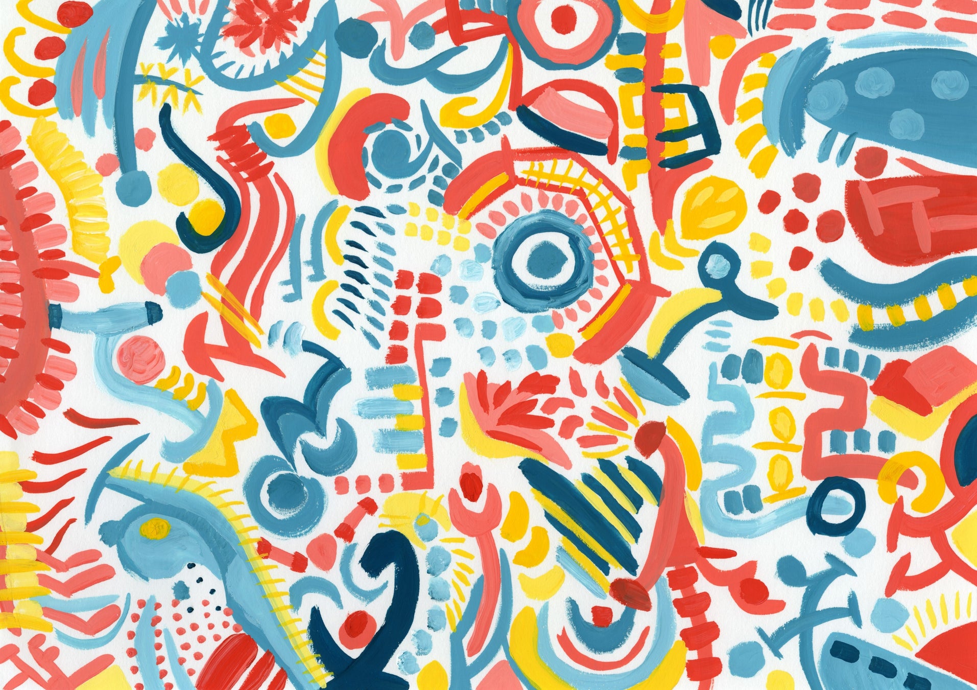やわらかくてあたたかい気持ちや、そのときその瞬間に感じたことを、色を浴びるように思いのままに描いています。