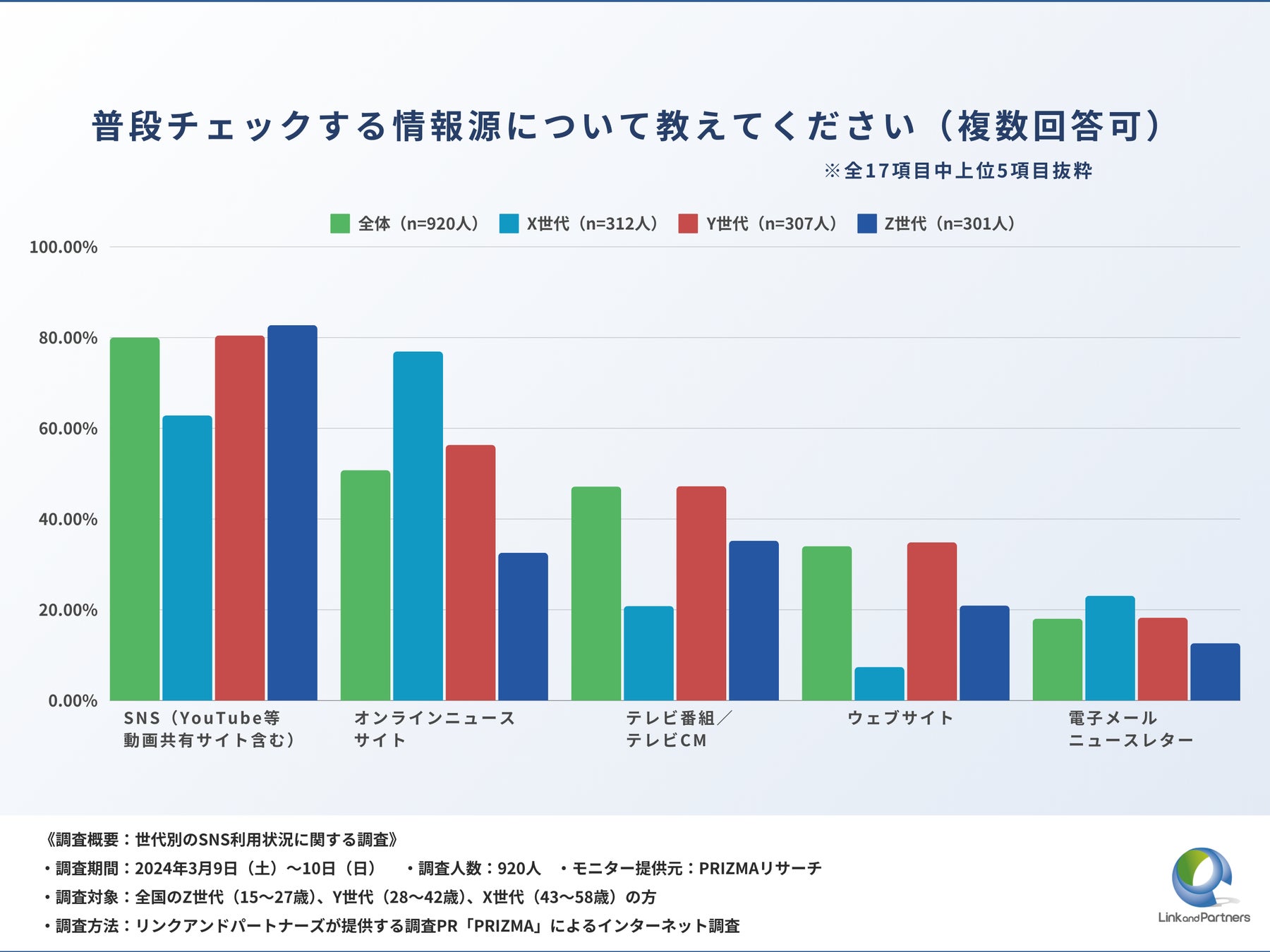 今回、株式会社リンクアンドパートナーズは、全国のZ世代(15〜27歳)、Y世代(28〜42歳)、X世代(43〜58歳)の方を対象に「世代別のSNS利用状況に関する調査」を実施しました。