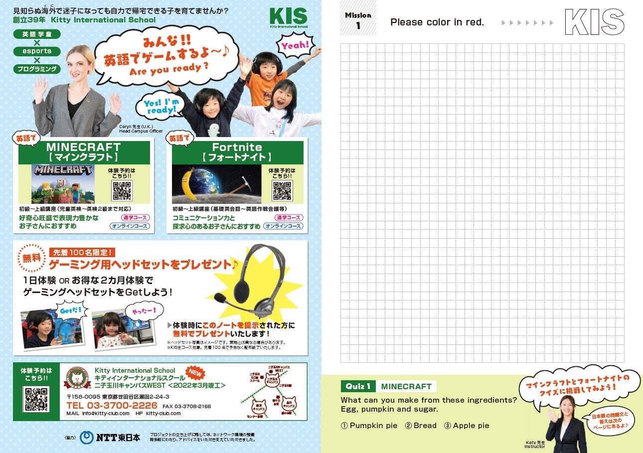 ゲームを通して楽しみながら英語やプログラミング教育が可能となり、オンラインによる海外の方とのコミュニケーション機会や自習ノート(別紙参照)※も提供するなど、教育活動志向型のサービスを提供します。