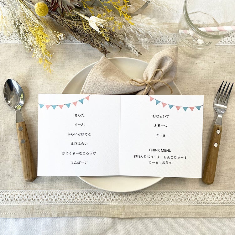 メニュー内容はひらがな・カタカナ・漢字など、お子様の年齢に合わせて対応可能です♪