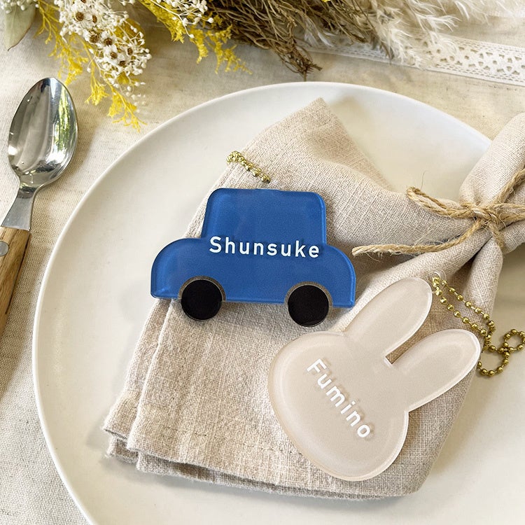 デザインは「くるま」と「うさぎ」の2種類よりお選びいただけます。もちろんキッズ用としてではなく、全ゲストの席札としてもお使いいただくのも大歓迎です♪