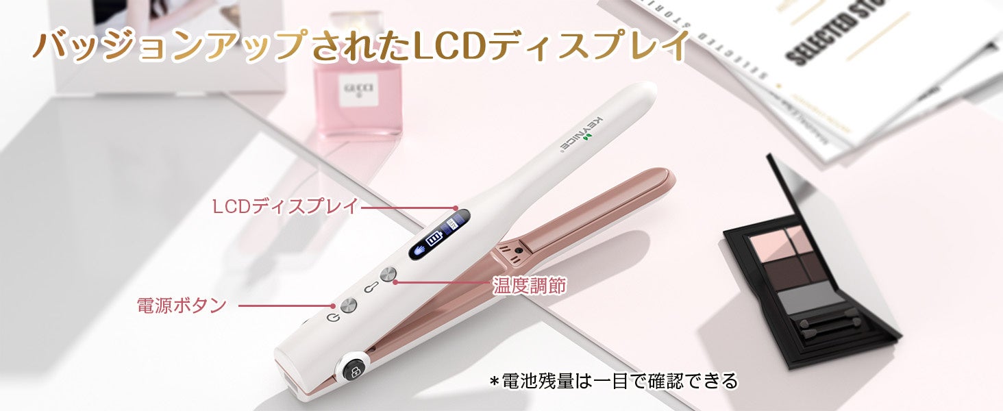 「最大37%割引!!アマゾン9月セール」2023新登場 KEYNICEコードレスヘアアイロン ストレート カール 2way LCD 三段階温度設定 短髪を手軽に KN-2606 KN-2609