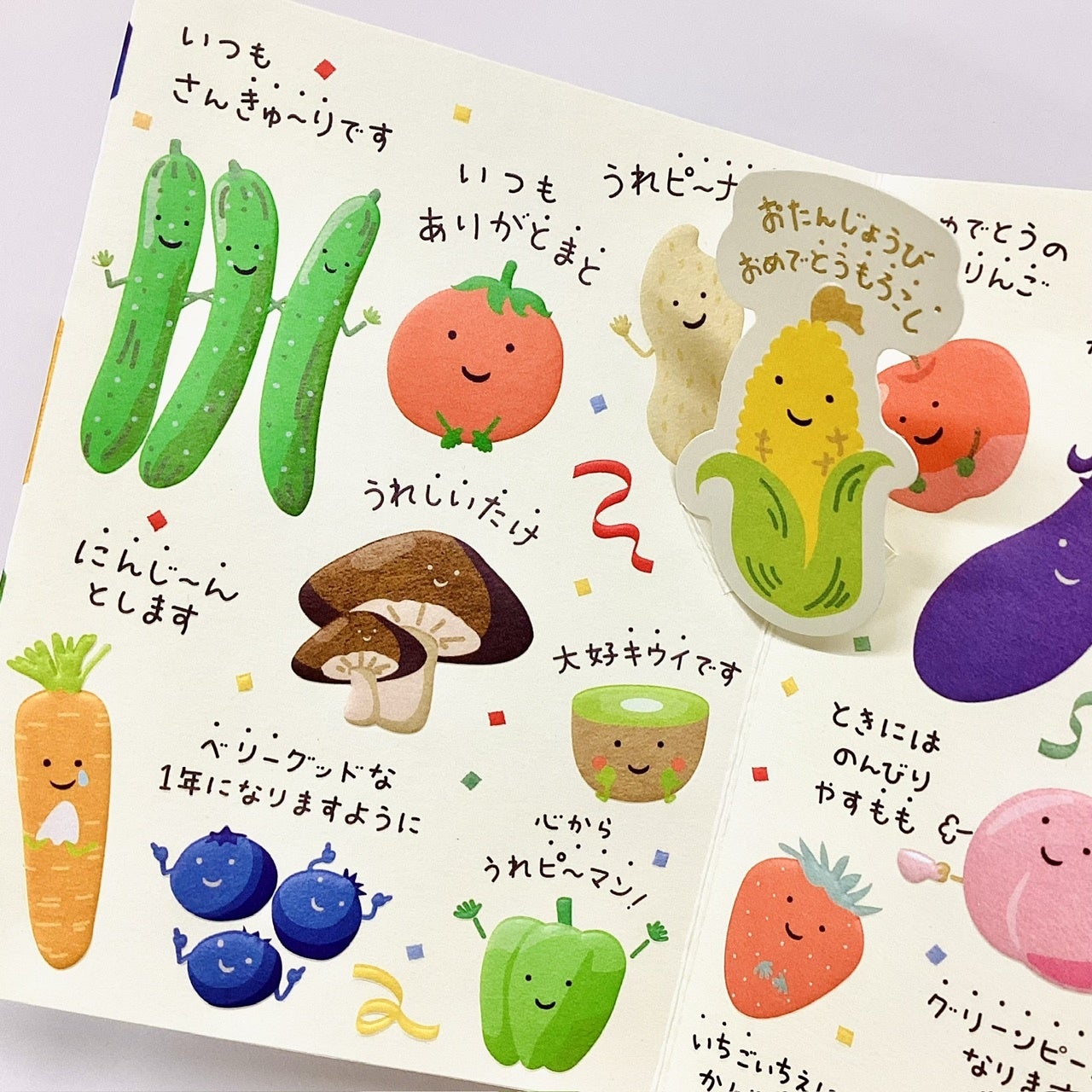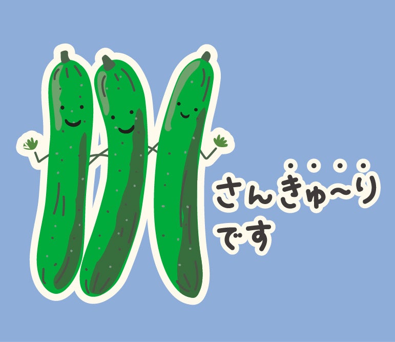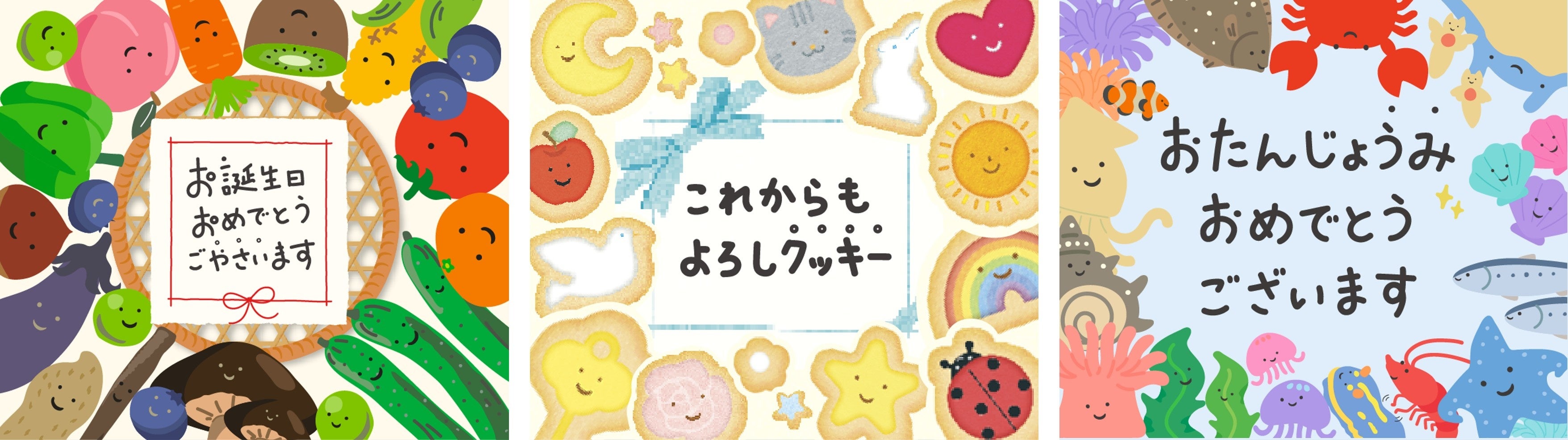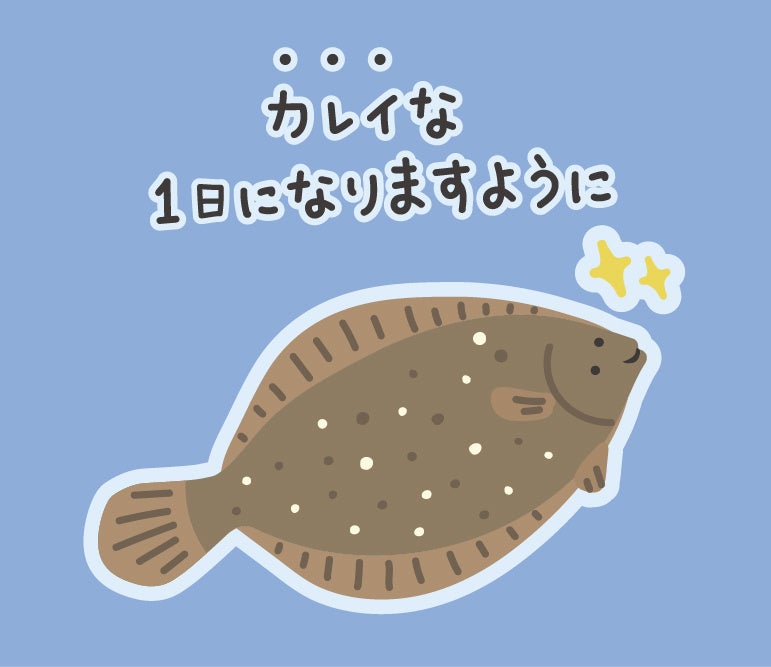 今回のLINEスタンプには、発売中の「おやさい」「クッキー」に加え、2026年7月6日(月)発売予定の新柄「うみのいきもの」を含むデザインを収録。野菜やいろんな形のクッキー、海のいきものたちをモチーフに、「さんきゅーりです(=キュウリ)」「よろしクッキー(=クッキー)」「カレイな1日になりますように(=カレイ)」など、絵柄に合わせたド定番のダジャレをたっぷり詰め込みました。