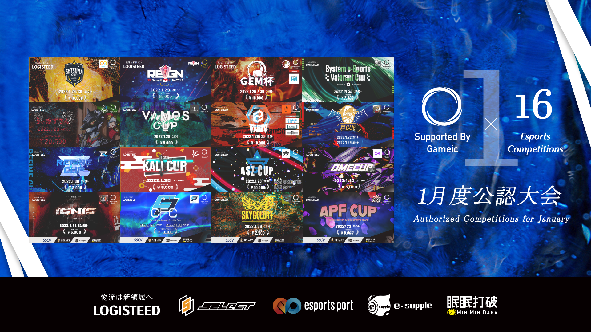 厳正なる審査の結果、以下の16団体様の大会をGameicの1月公認大会とし、協賛及び大会企画、運営、プロモーション、大会クリエイティブのサポートなどの包括的な大会支援を行わせていただきました。