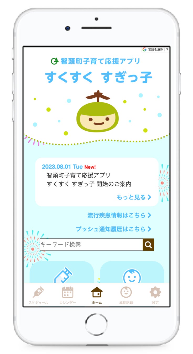 「すくすく元気に育ってほしい」という想いを込めて「智頭町子育て応援アプリ すくすく すぎっ子」と命名しました。トップページには、智頭町森林セラピーイメージキャラクター「もりりん」が登場。智頭町らしさが詰まった、こだわりのデザインでお届けします。