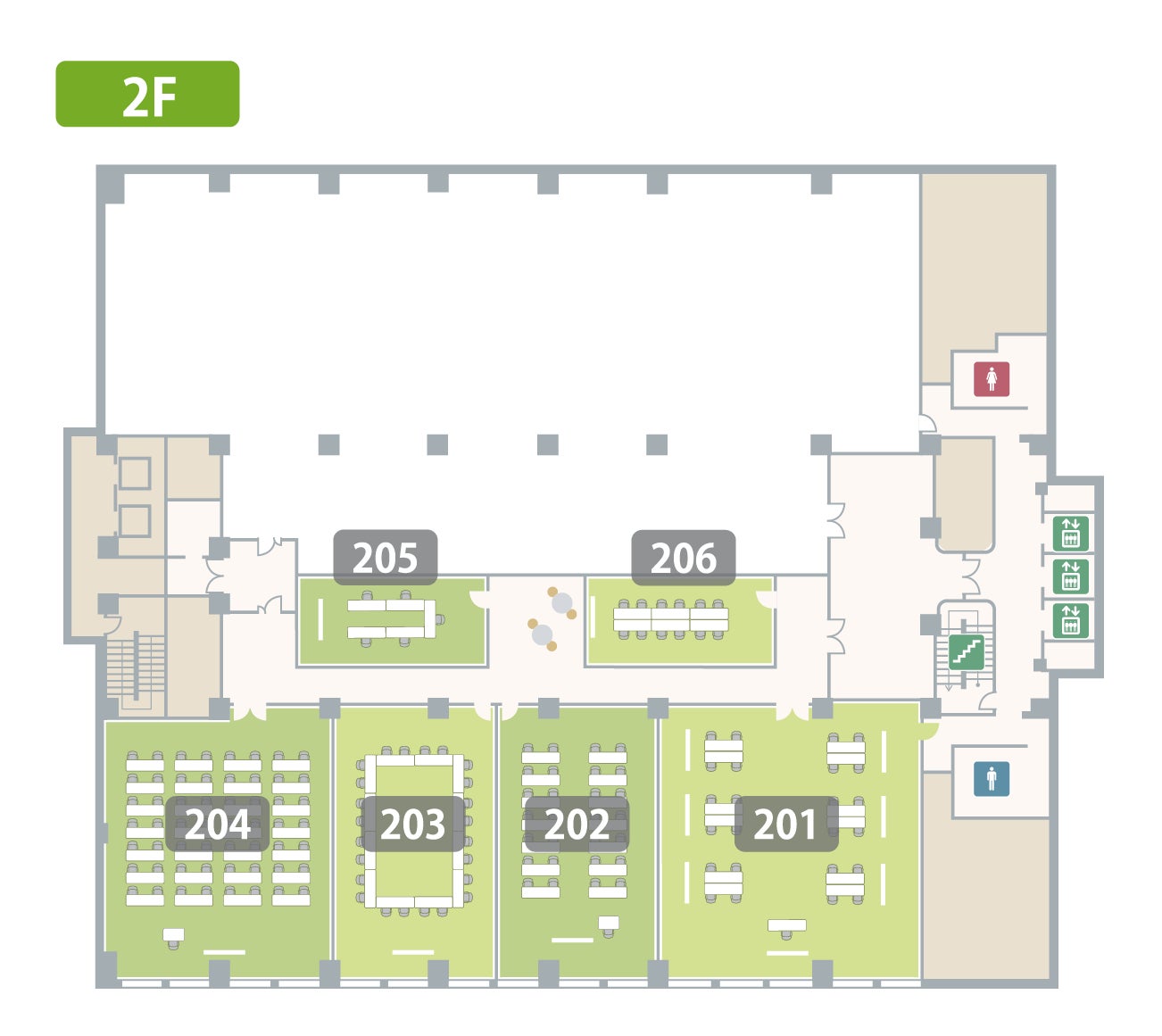 当社グループが運営する貸会議室16拠点目となる「ビジョンセンター品川」は、JR各線・京急本線「品川駅(高輪口)」から徒歩3分という好立地に開業いたします。全14室、席数はスクール形式で18席から430席と豊富なバリエーションのスペースを有し、当社グループ運営の貸会議室として最大級の延床面積2,000㎡となります。3階の301A+B会場は床面積600㎡と、1部屋あたりの床面積では品川エリアの貸会議室の中で最大規模の広さとなります。株主総会や配信会場、社員研修など貸会場としての一面も持ち合わせています。