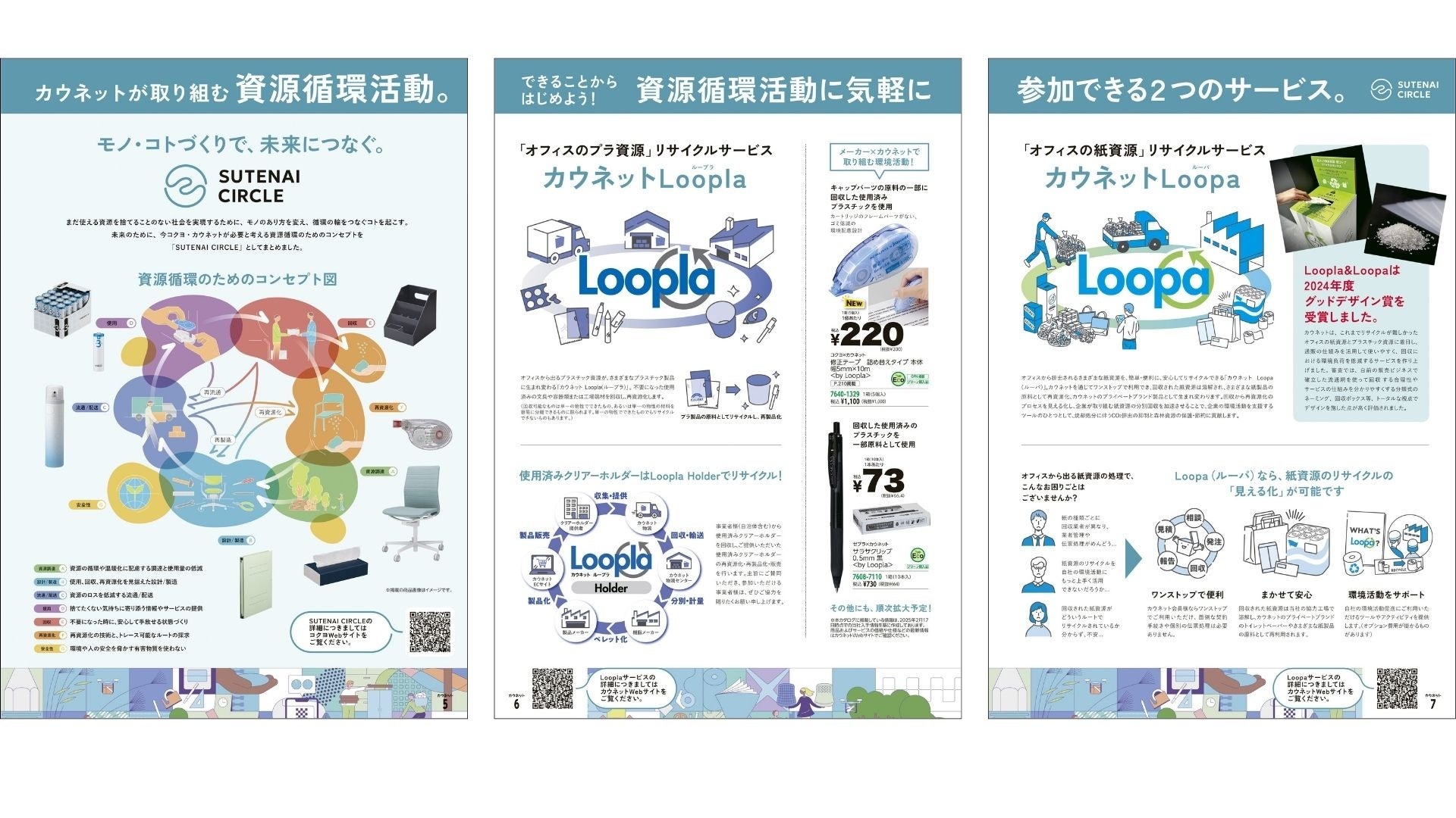 今号では、「SUTENAI CIRCLE」のコンセプトのもと、お客様が資源循環活動に気軽に参画できる2つのサービスを紹介しています。プラスチック資源リサイクルサービス「カウネット Loopla(ループラ)」と紙資源リサイクルサービス「カウネット Loopa(ルーパ)」です。2024年度グッドデザイン賞も受賞したこれらのサービスは、簡単な申し込みプロセスと回収ボックスの提供により、お客様が手軽に環境配慮活動へ参加できるように設計しています。