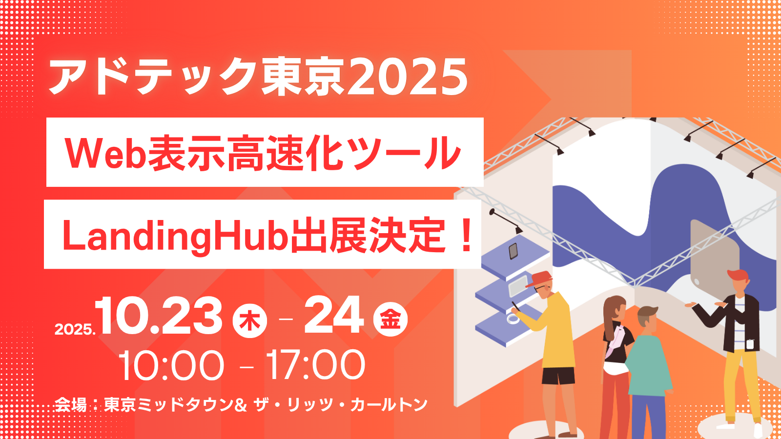 株式会社TeN(テン、以下「当社」、所在地:東京都渋谷区、代表取締役:廣瀬由典)のWeb表示高速化ツール「LandingHub(ランディングハブ」は、2025年10月に開催される「アドテック東京2025」に10/23(木)〜24(金)の2日間、出展することをご報告いたします。