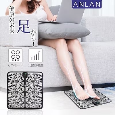 両足はEMSマットに乗るだけで、6種類のEMSパルスを与えます。
