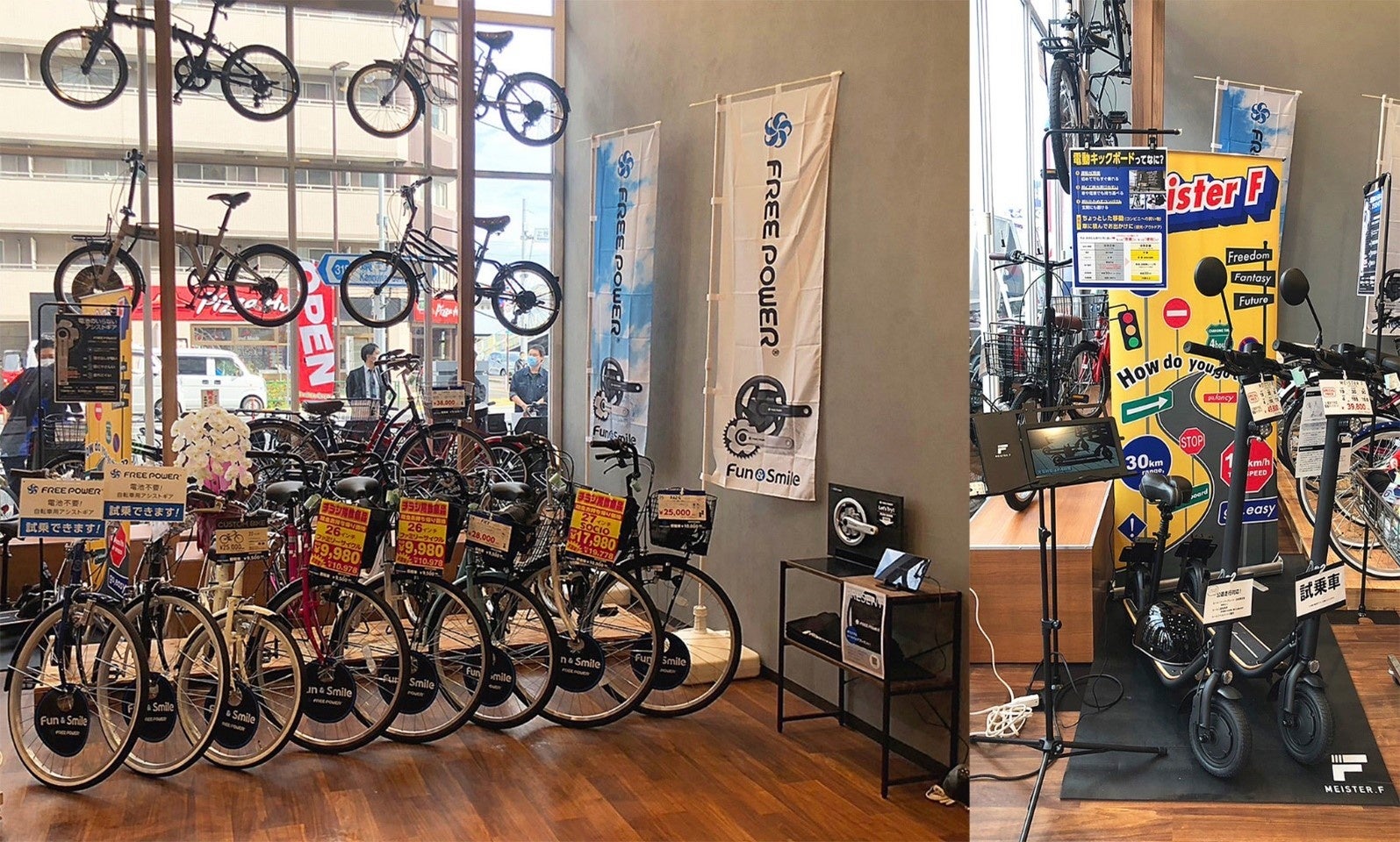 また、自転車だけではなく法改正を前に注目の高まる公道走行可能な電動キックボードもご用意し、試乗・販売しております。