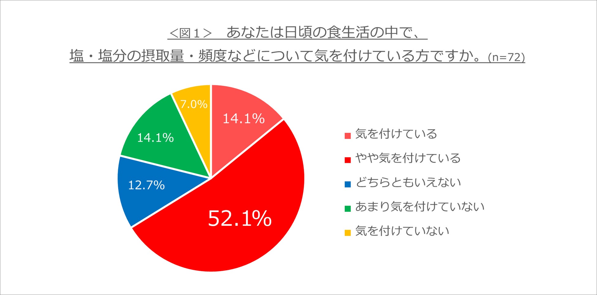 当社が実施したアンケート調査では、「日頃の食生活で塩分の摂取量や頻度に気を付けている」と回答した人が半数以上を占めるという結果が得られました。