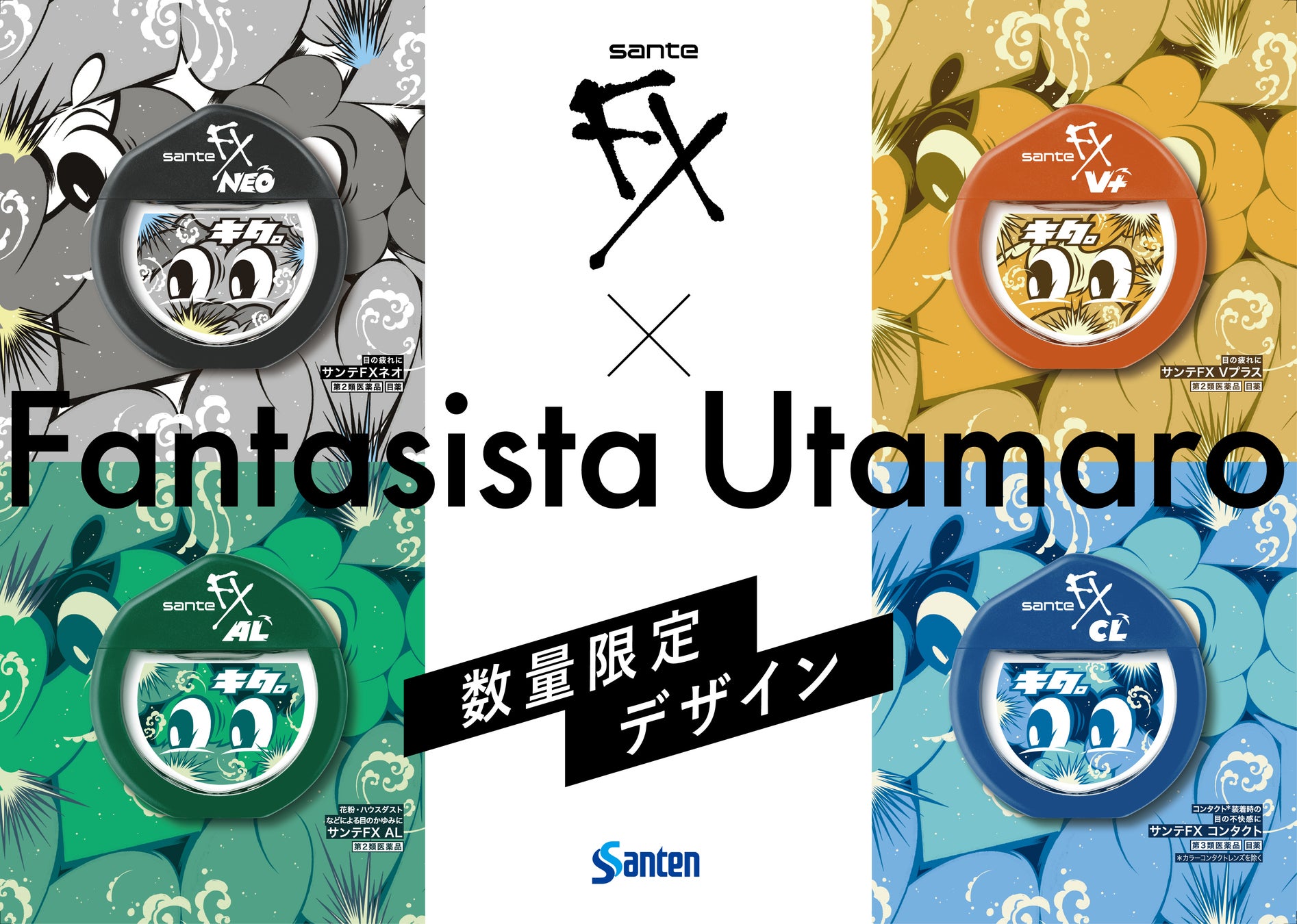 参天製薬株式会社(本社:大阪市、以下Santen)は、一般用点眼薬「サンテFX シリーズ」において、ニューヨークを中心に世界で活躍するアーティストFantasista Utamaro氏によるオリジナルデザインパッケージの目薬「サンテFX Artwork by Fantasista Utamaro」を、本日2024年11月14日(木)より全国の薬局・ドラッグストアにて数量限定で発売いたします。