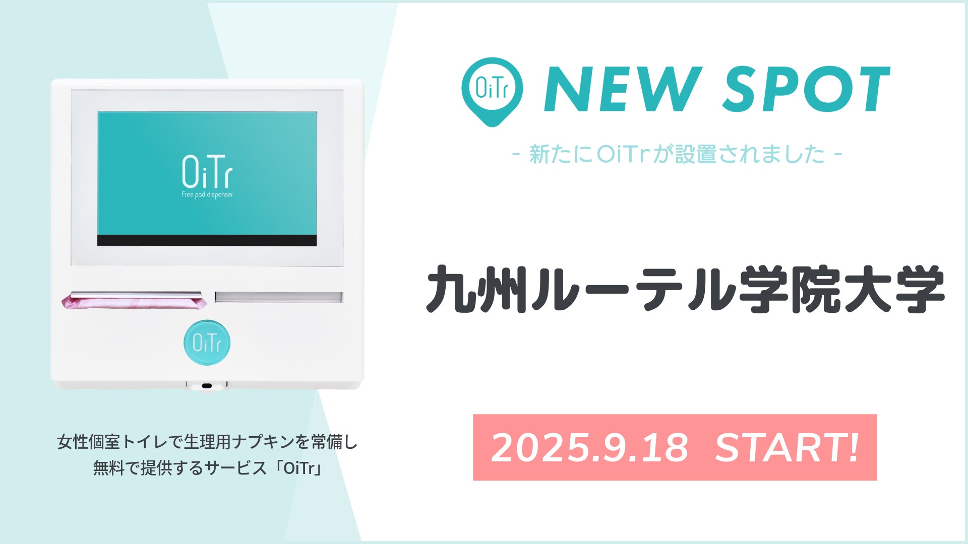 全国の商業施設や交通機関、公共施設、オフィス、学校などの女性個室トイレに、生理用ナプキンを常備・無料提供する日本初のサービス「OiTr(オイテル)」を展開するオイテル株式会社(本社:東京都新宿区、代表取締役:﨑山 真)は、「トイレットペーパーのように、個室トイレに生理用品が行き届く社会」の実現を目指し、新たに「九州ルーテル学院大学(熊本県熊本市)」にOiTrを設置し、2025年9月18日よりサービスを開始しましたことをお知らせいたします。なお、今回が熊本県内で初のOiTr設置事例となります。