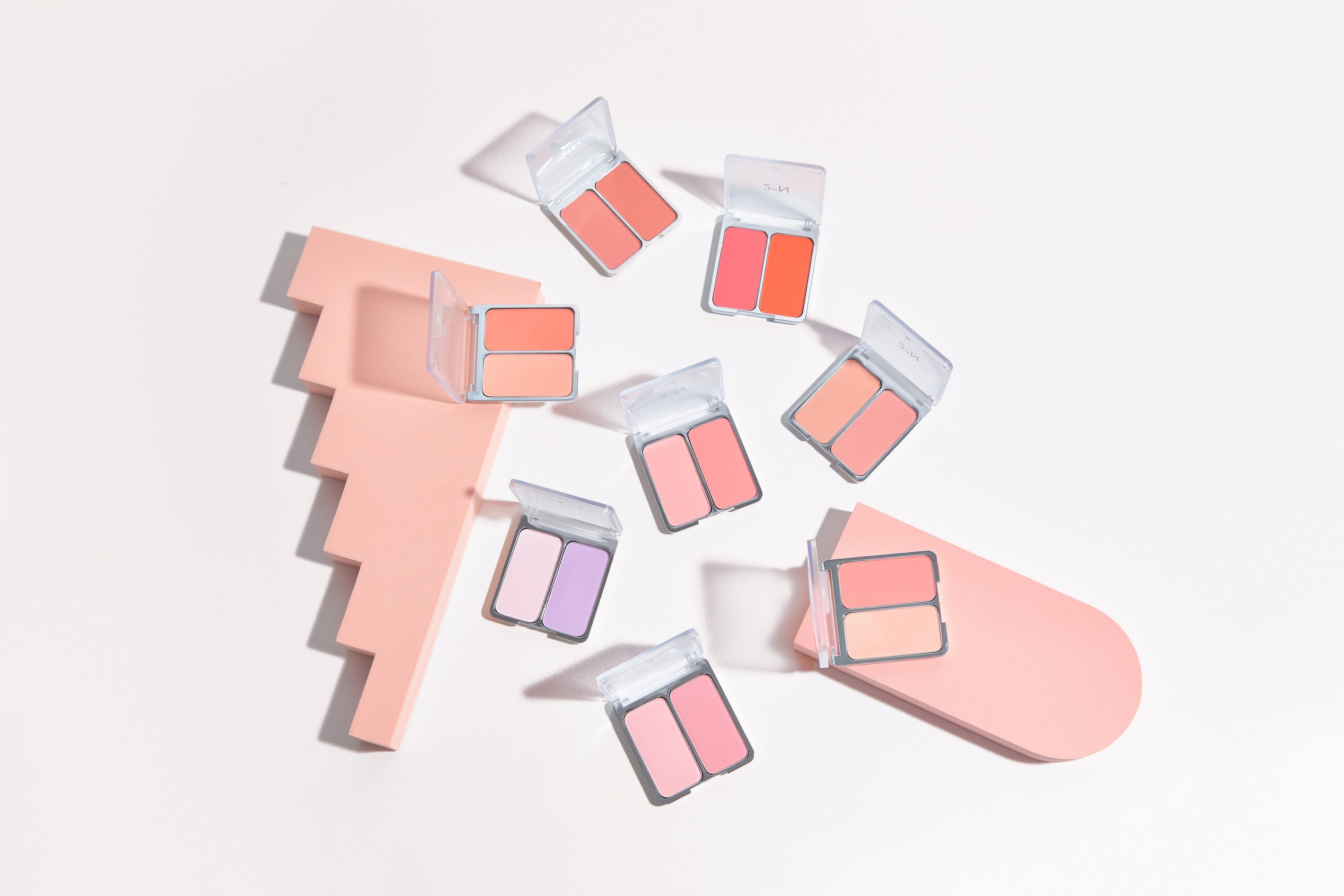 デュアルチークは、容器のデザインからカラーの組み合わせまで、細部にわたるこだわりがつまっております。一つのパッケージには、明るめの色味と濃いめの色味の2つのチークがコンパクトにまとまっています。これにより、ハイライトとシェーディングの効果を一つのパッケージで楽しむことができます。デュアルチークを使用することで、立体感のあるメイクが手軽に実現できます。