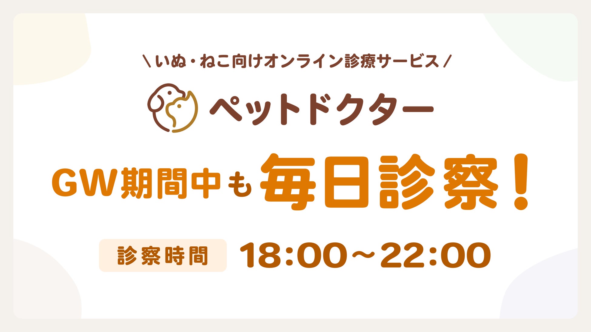 ペットのオンライン診療アプリ「ペットドクター」はゴールデンウィーク中も毎日休まず診察します!