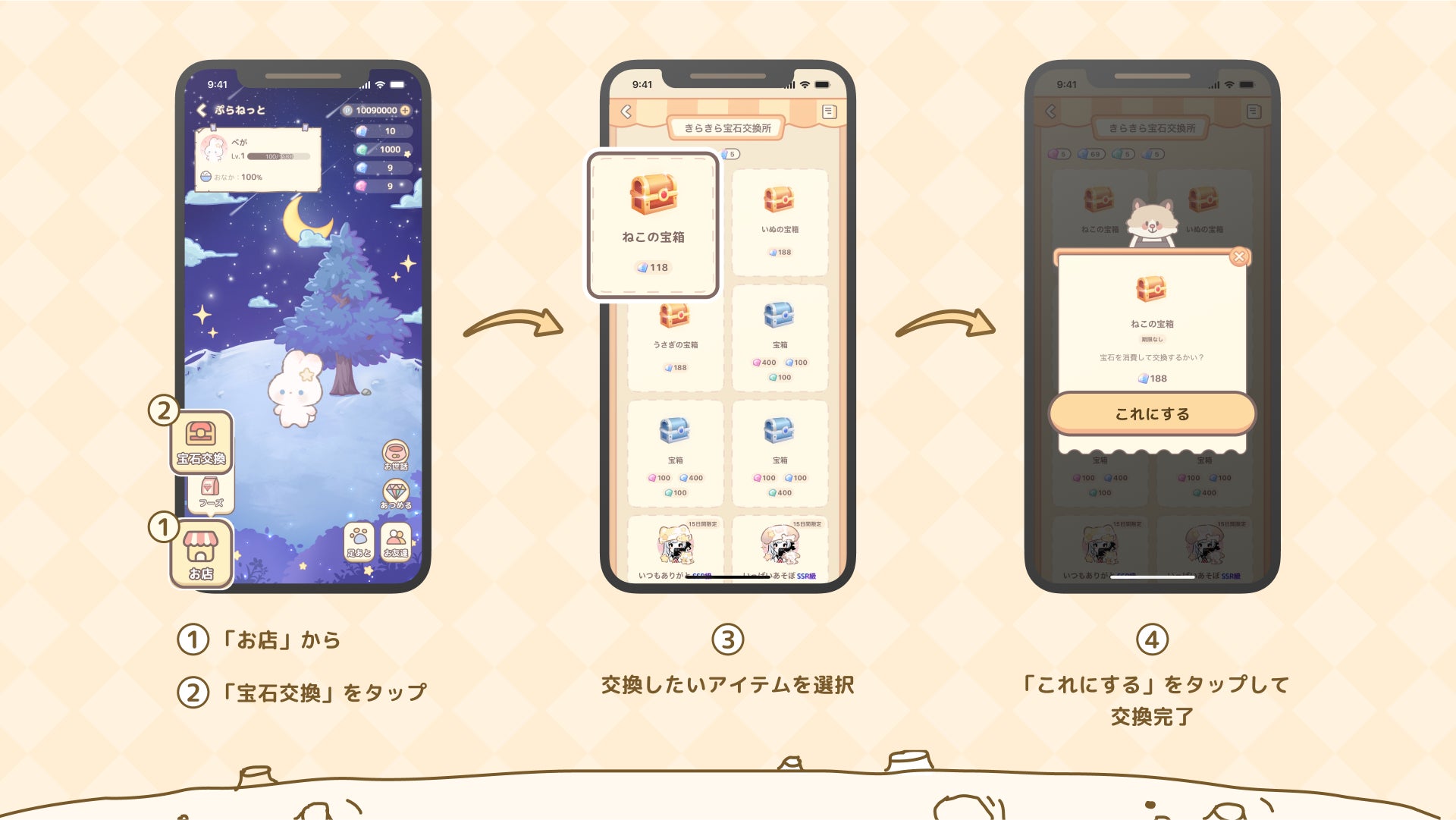 2)「宝石交換」から「きらきら宝石交換所」ページへ移動。