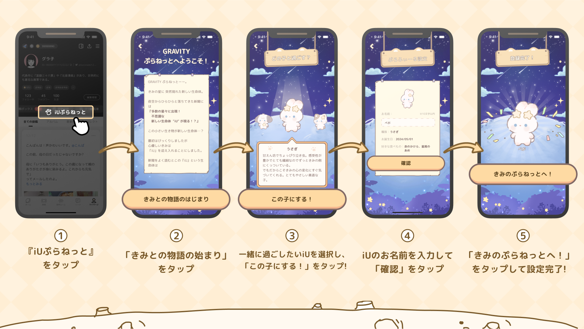 さらに、“iU(あいゆー)”という読み方には、「愛をあなたに」というメッセージもあり、“GRAVITYで人と人が寄り添えるやさしさが溢れる世界”というGRAVITYのコンセプトを“iU”に込めました。