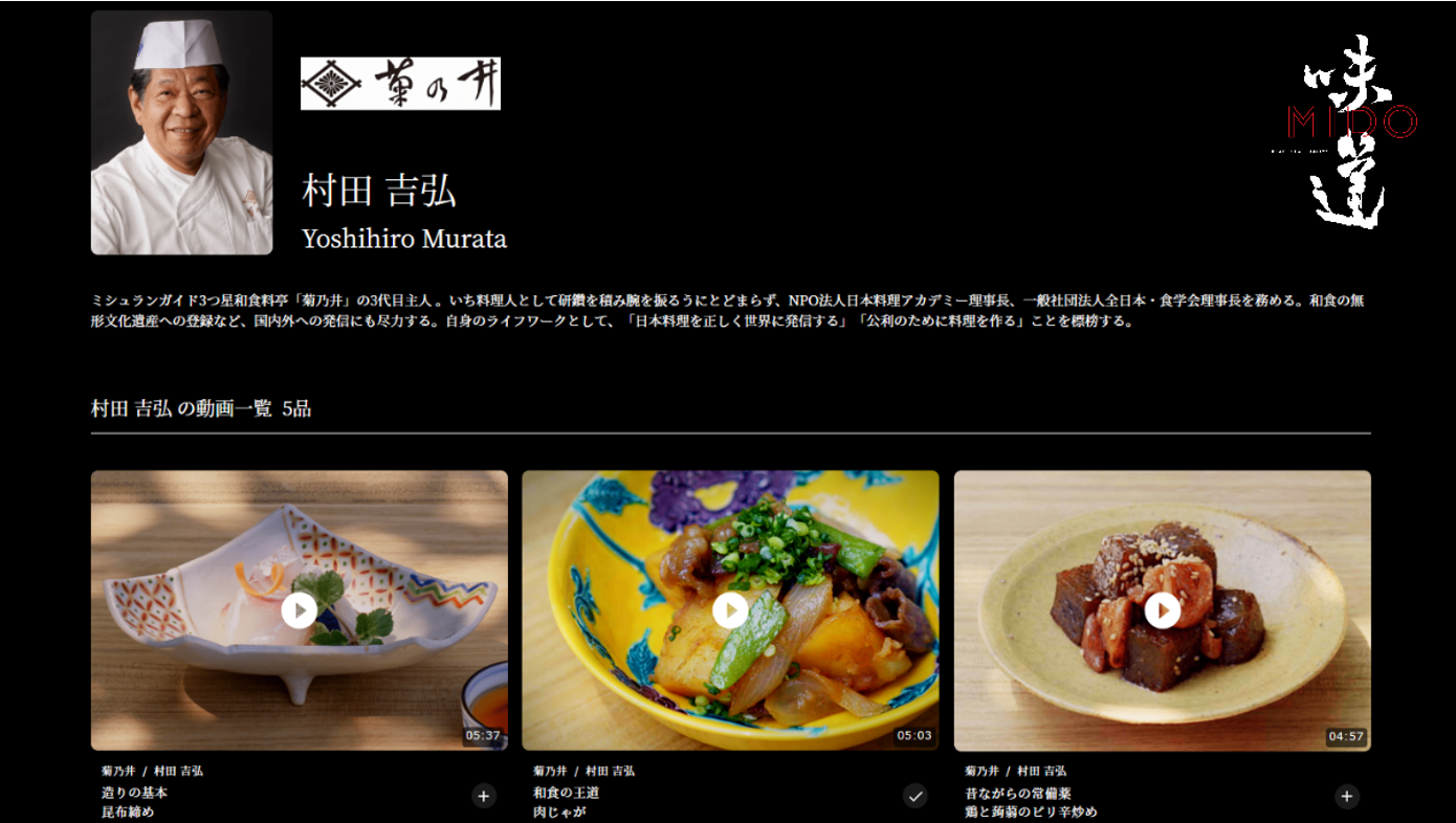 ・23年7月、味道 -MIDO-サイトローンチ。トップシェフの技術や経営の実践知を動画化して配信中。