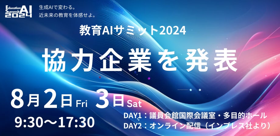 一般社団法人教育AI活用協会(代表理事・佐藤雄太)は、「教育AIサミット2024」における協力企業を発表いたします。