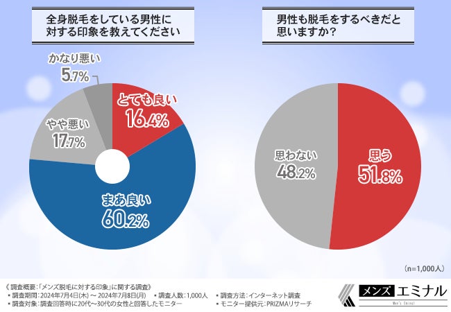 そこで今回、メンズ専用脱毛クリニック・メンズエミナルは、20代~30代の女性を対象に「メンズ脱毛に対する印象」に関する調査を実施しました。