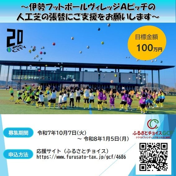 多くの方にご満足いただける環境を目指して~伊勢フットボールヴィレッジAピッチの人工芝の張替に寄付のご支援をお願いします。~