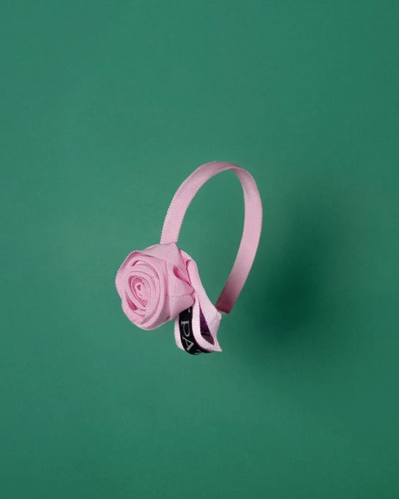 2025年春夏コレクション「ローズ」からインスピレーションを得たハンドメイドのグログランチャームとヘッドバンド。これらのアイテムは、パトゥのスリーピングストック素材を使用し、パトゥの社内クリエイティブチームと大阪文化服装学院の学生たちが協力して、日本にてハンドメイドで仕上げられました。売上の一部は、「国際NGOプラン・インターナショナル」を通じて、支援を必要とする子どもや女の子に寄付されます。